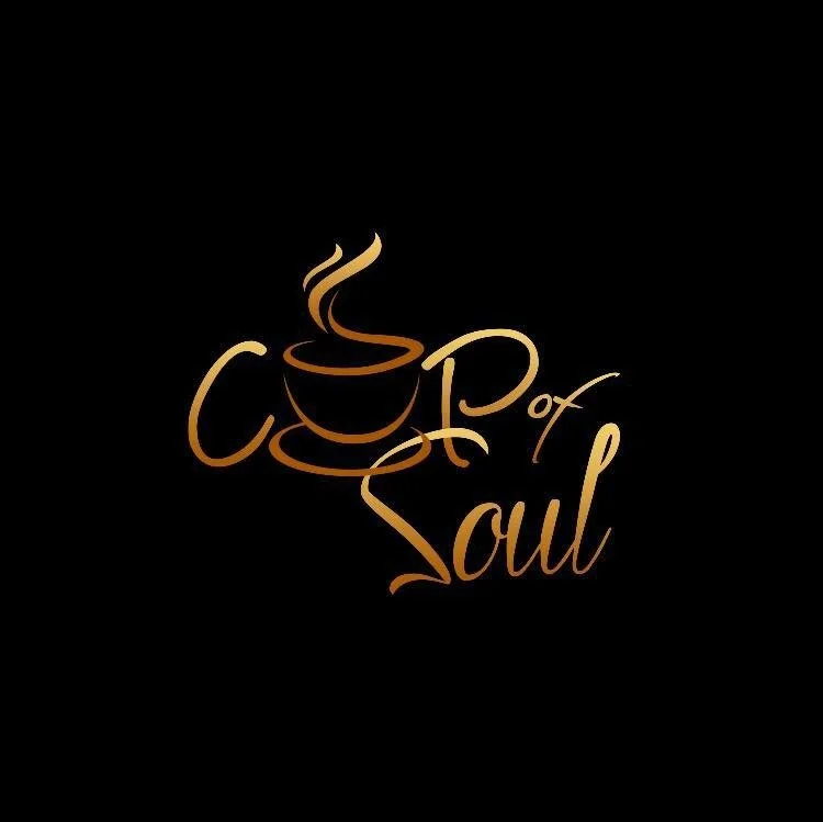 A logo with a coffee cup emitting steam and the words 'Cup of Soul' in a stylized, gold-colored font on a black background.